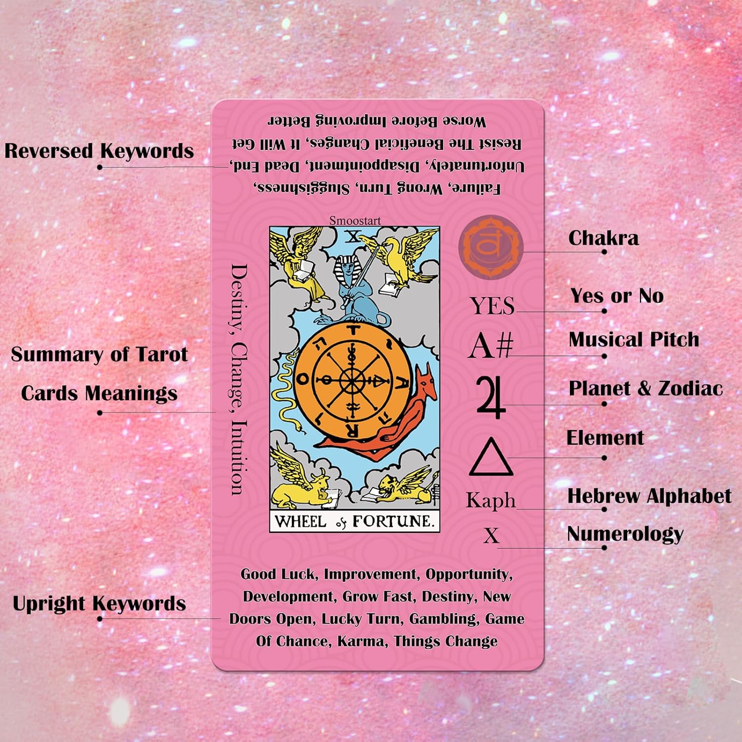 The most unique and helpful feature is the Meanings on Cards design. Each major and minor arcana card clearly displays the upright and reversed interpretations directly on the card face. This eliminates constant searching in the guidebook, speeding up your learning and making readings feel natural and confident from day one.
